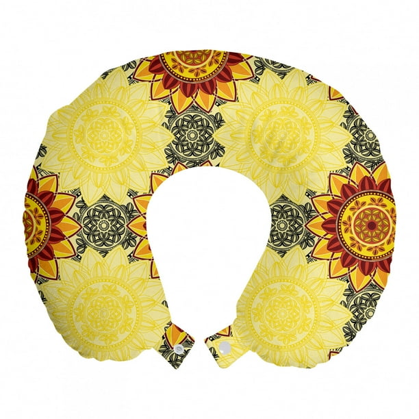 Mandala Travel Pillow Neck Rest Vibrant Yellow Mandala With Floral Framework Petals Boho Memory Foam Traveling Accessory Airplane And Car 12 Yellow Black Ruby By Ambesonne Walmart Com